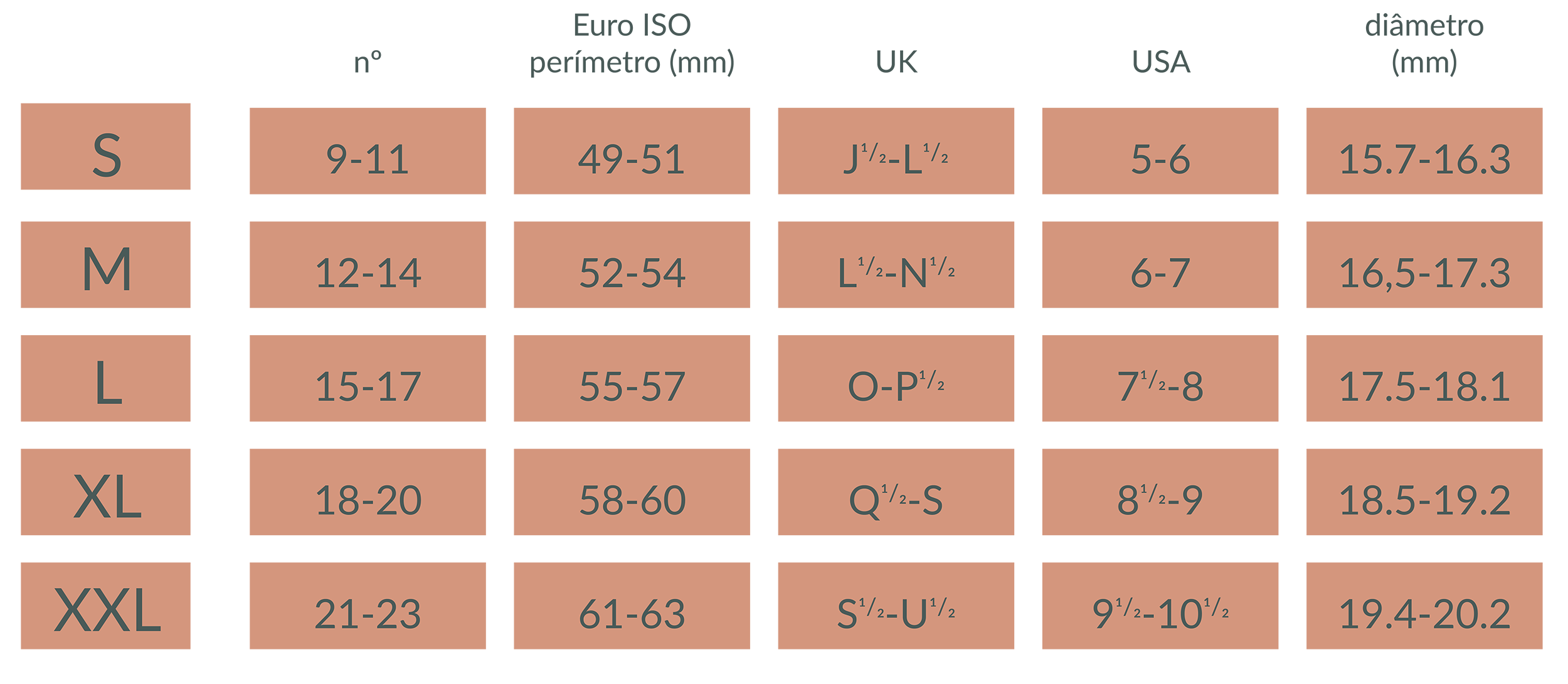 Meça o diâmetro de um anel que já tenha e compare-o com a tabela abaixo.
